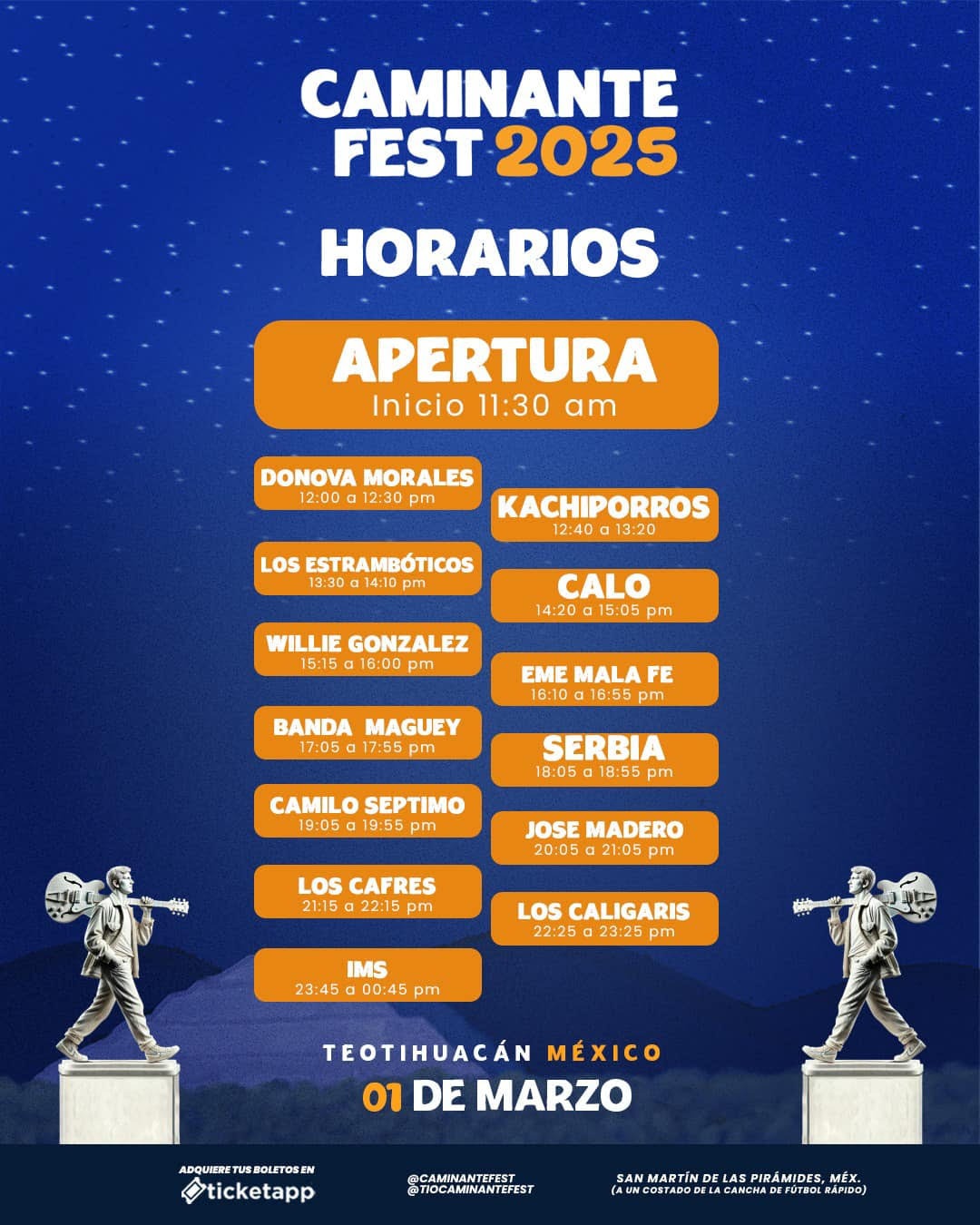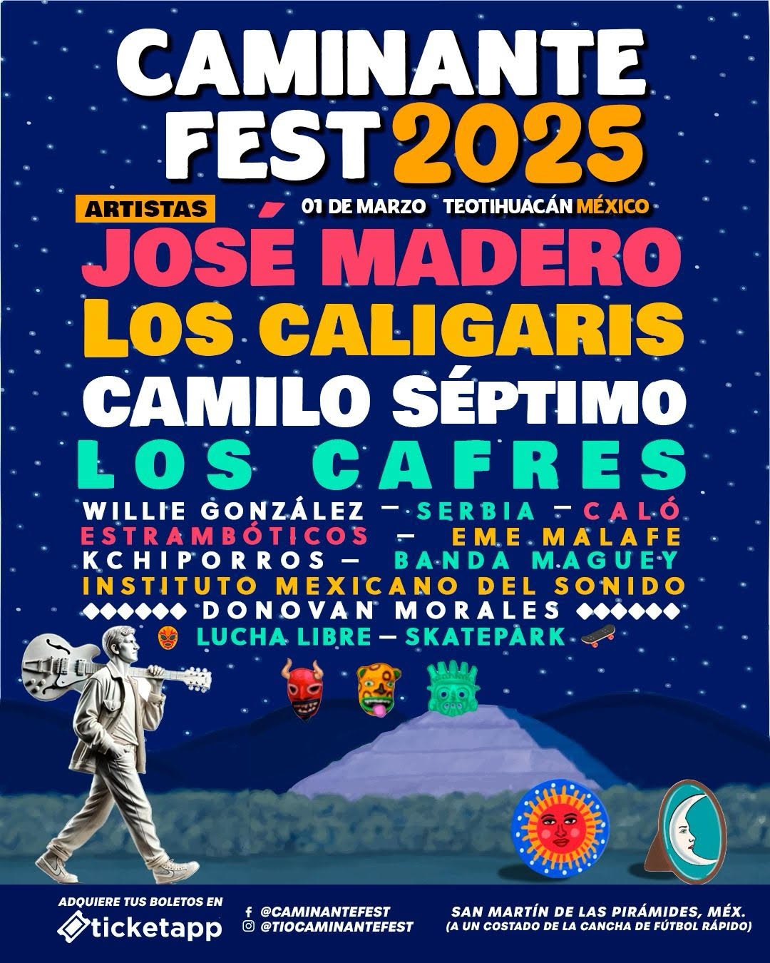 Los boletos ya están disponibles a través del sistema Ticketapp y en puntos de venta autorizados. No pierdas la oportunidad de vivir esta experiencia integral que mezcla música, cultura y la magia de uno de los sitios más emblemáticos de México. Adquiere tus boletos en este enlace: https://caminantefest25.ticketapp.mx/