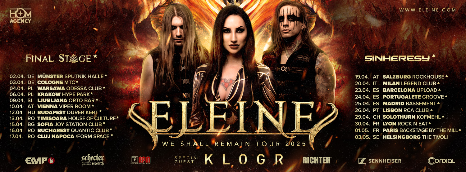 El grupo sueco ELEINE mantiene su gira europea como cabeza de cartel junto a KLOGR y SYNHERESY pese a la expulsión por comportamiento inapropiado a sus fans de dos de sus miembros hace un par de semanas, concretamente el bajista Filip Stålberg y el batería Jesper Sunnhagen.