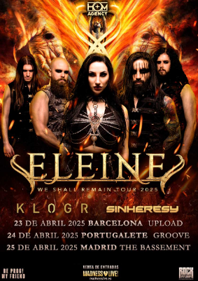 Posteriormente ELEINE estará tocando en España como grupo invitado con los titanes del metal PRIMAL FEAR que comenzarán la gira de presentación de su nuevo trabajo el próximo 30 de Septiembre en la sala Mon de Madrid, el 1 de Octubre en la Sala Garage Beat Club de Murcia, el 2 en la sala Salamandra en Barcelona y para finalizar la gira el día 4 de Octubre en la sala Totem de Villava.
