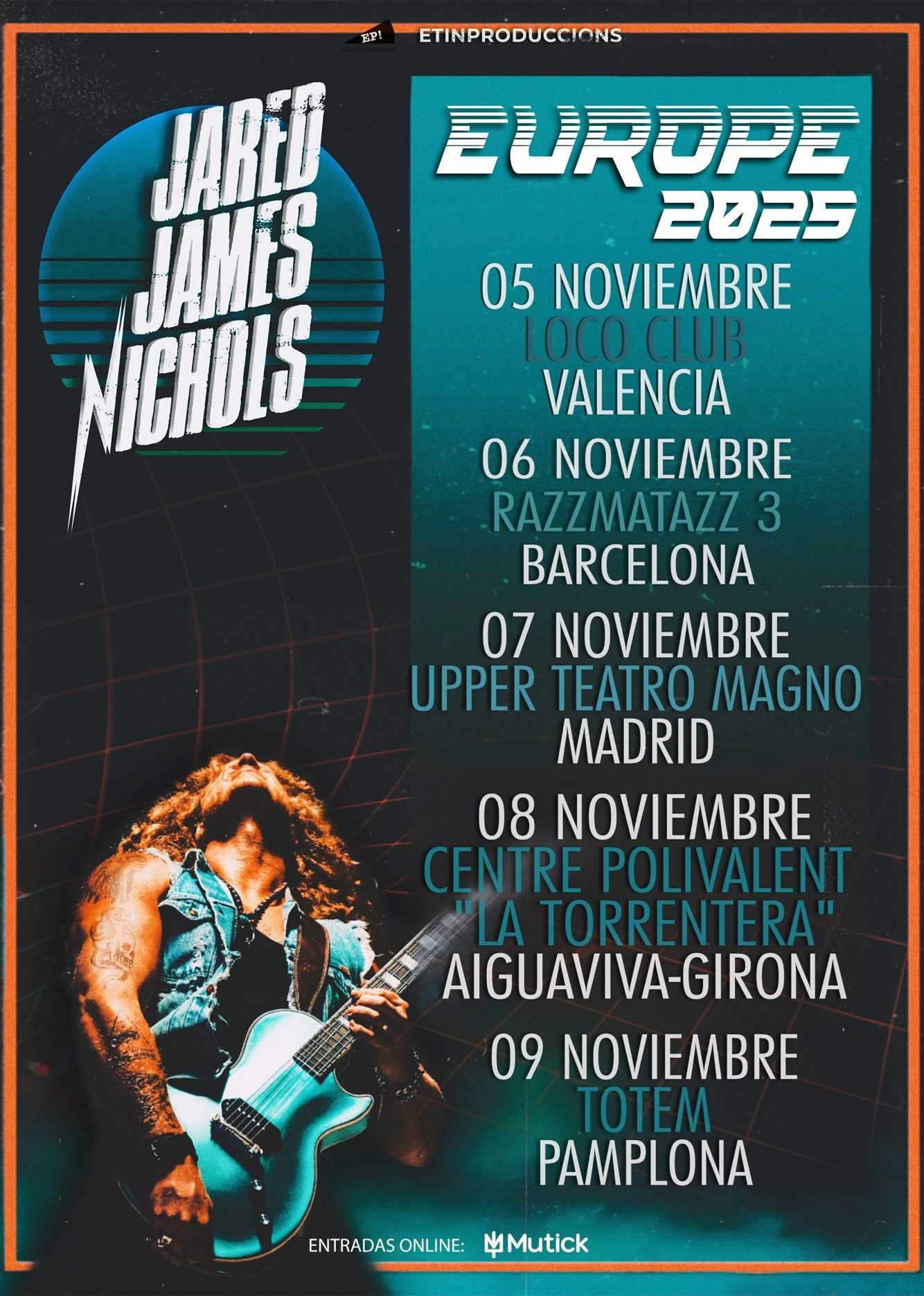 Además, JARED JAMES NICHOLS se embarcará en su gira europea y británica como cabeza de cartel, comenzando el 5 de noviembre en Valencia, España, en el Loco Club, y finalizando el 6 de diciembre en Londres, Reino Unido, en The Underworld.