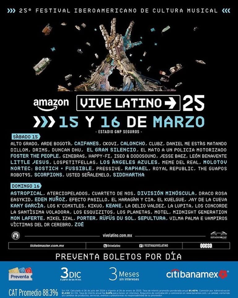 El Vive Latino se llevará a cabo el 15 y el 16 de marzo en el estadio GNP seguros.