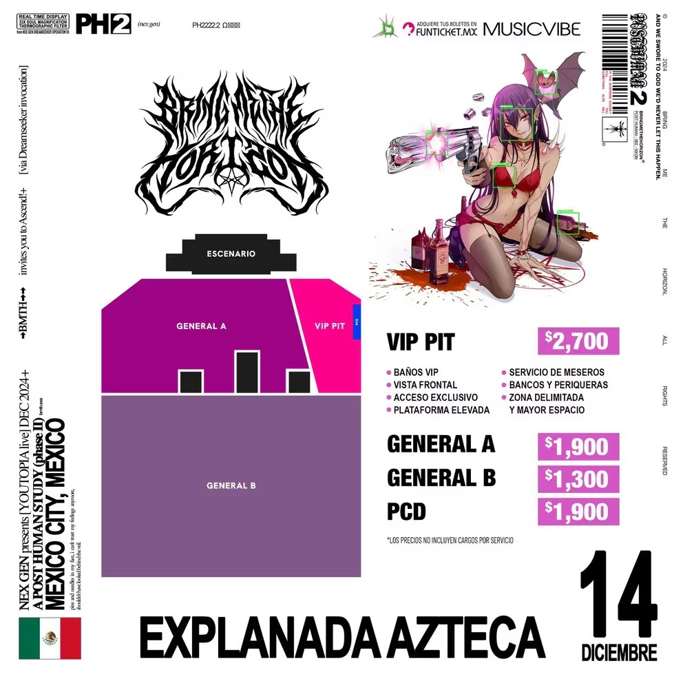 Tras el lanzamiento de su nuevo álbum de estudio, POST HUMAN: NEX Gen, BMTH ha generado grandes expectativas con su sonido evolucionado y letras que capturan la esencia de una generación resiliente. El álbum ha sido bien recibido por la crítica y promete ser el centro de un espectáculo lleno de energía y nuevas experiencias auditivas.
