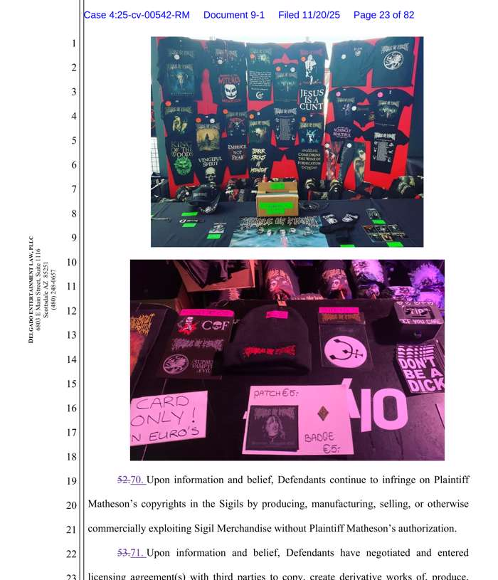 Los papeles judiciales señalan que, en tours recientes, se mantuvieron a la venta productos con las imágenes de los demandantes, a pesar de quejas previas enviadas por escrito.