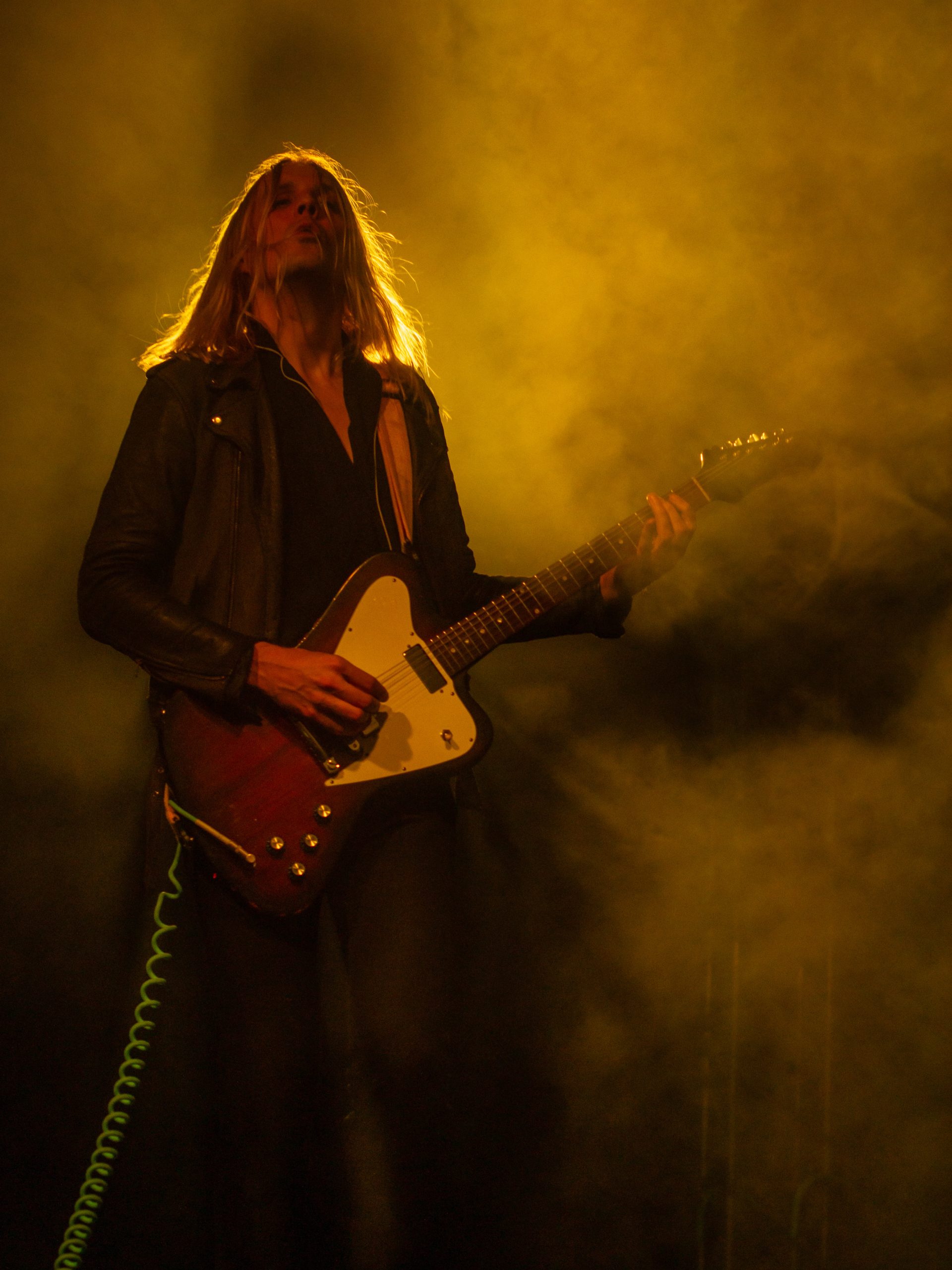 El viaje continuó con “Black Sun” y “The Old Man”, dos piezas que demostraron la capacidad del grupo para alternar entre la densidad del doom y los pasajes psicodélicos que remiten directamente al krautrock alemán de los años setenta. Las luces rojas, intermitentes y casi rituales, reforzaban la sensación de estar presenciando un acto místico más que un simple concierto.