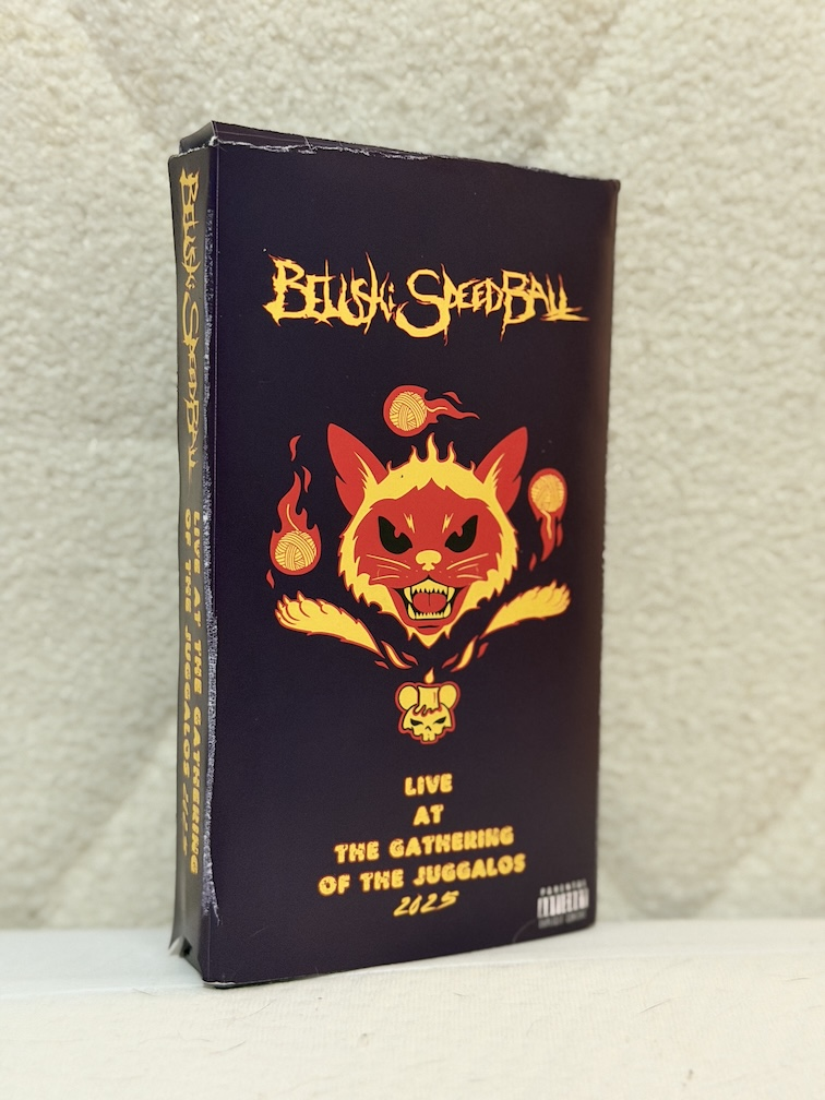 ¡Guau! ¡Atención, ninjas y ninjettes! ¡Tomen un Faygo y reúnanse! Los desvalidos del thrash metal de Louisville, BELUSHI SPEED BALL, acaban de lanzar su actuación completa de 2025 en el 25.º aniversario de Gathering of the Juggalos por primera vez en VHS. ¡Es hora de desempolvar la grabadora de tu abuela y presenciar la anarquía pura y el thrash metal más fresco de este lado de Delray! Al comentar sobre el lanzamiento anticuado, la banda dice: