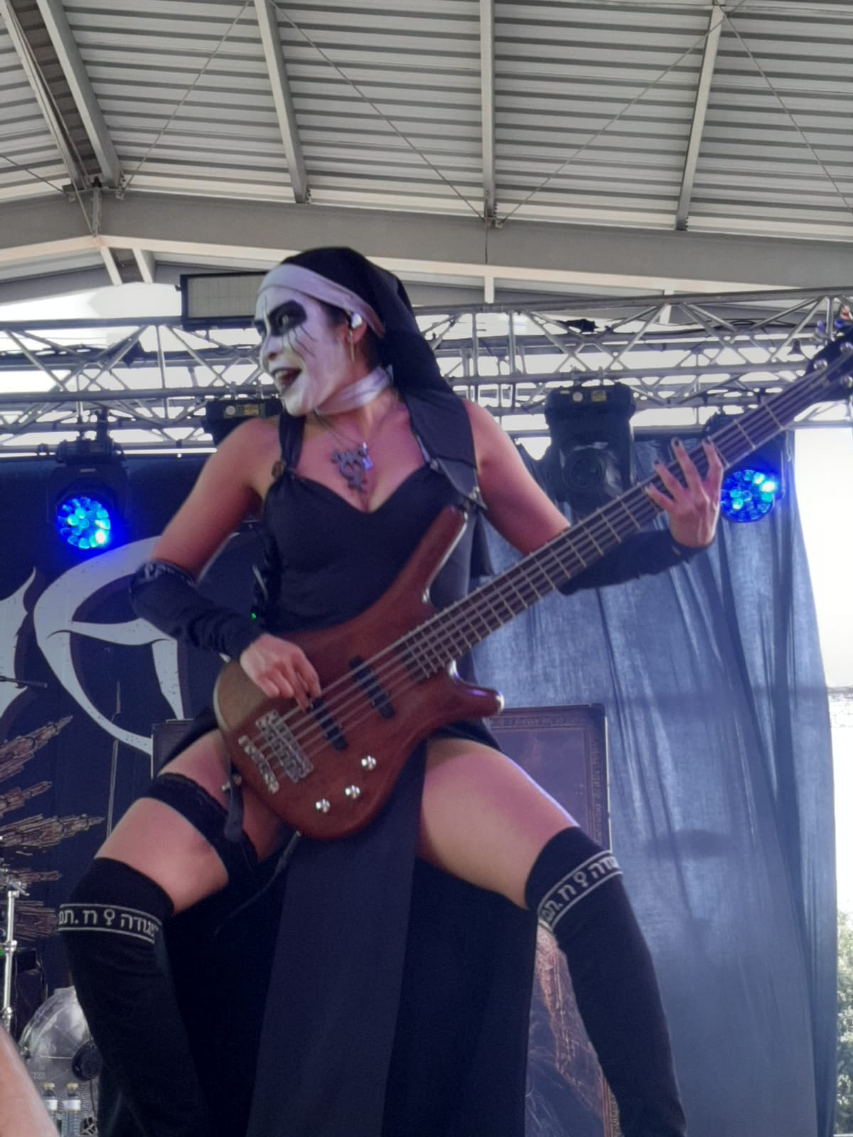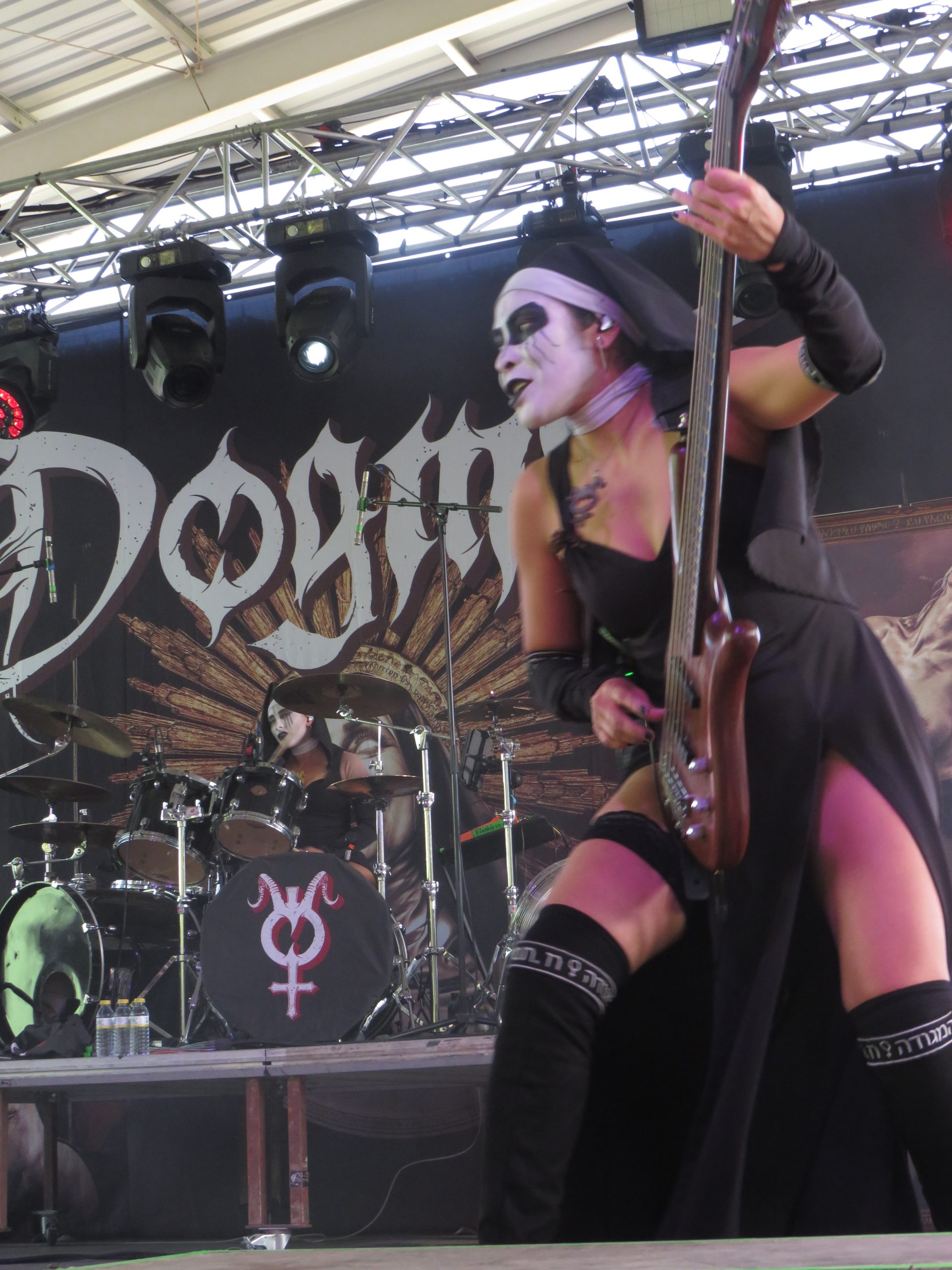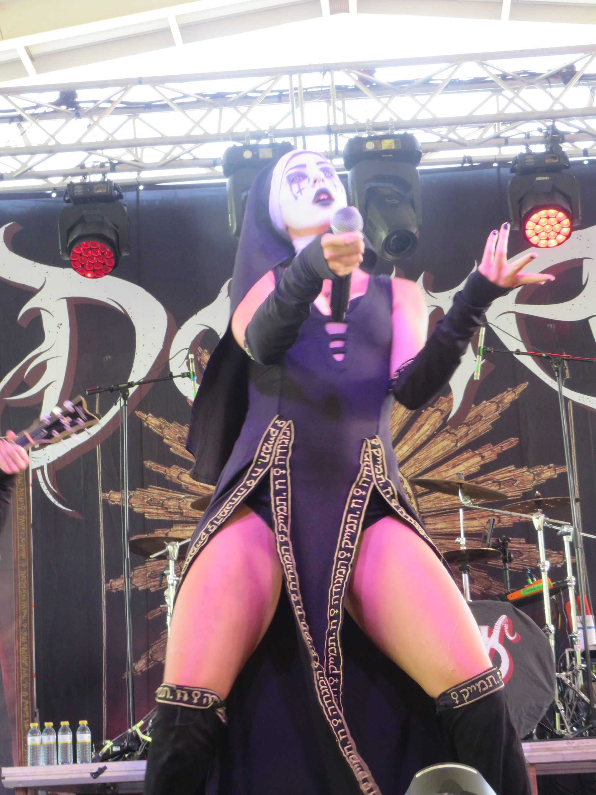 Y asi fueron descargando temas de su álbum de debut como “Feel the Zeal”, “Banned” y su ultimo sencillo “Be Free” con un pabellon a reventar lleno de nuevos fieles pecadores aclamando al unisono “Queremos ir a Misa, Queremos ir a Misa” disfrutando de “My First Peak”, “Made Her Mine” e incluso de la versión de “Like a Prayer” de MADONNA con su cantante Lilith exultante, la contundente Abrahel a la bateria junto a la provocadora Nixe al bajo, acompañadas por los riffs de las guitarras de Lamia y Rusalka.