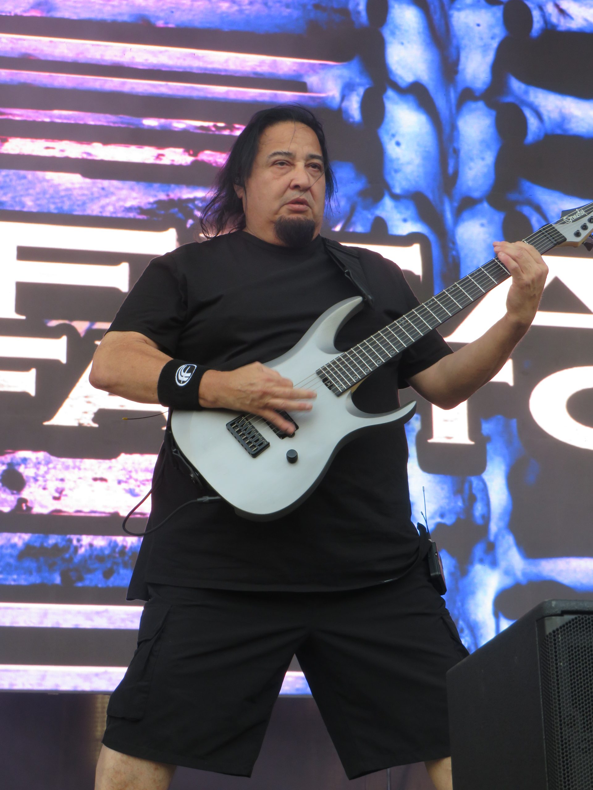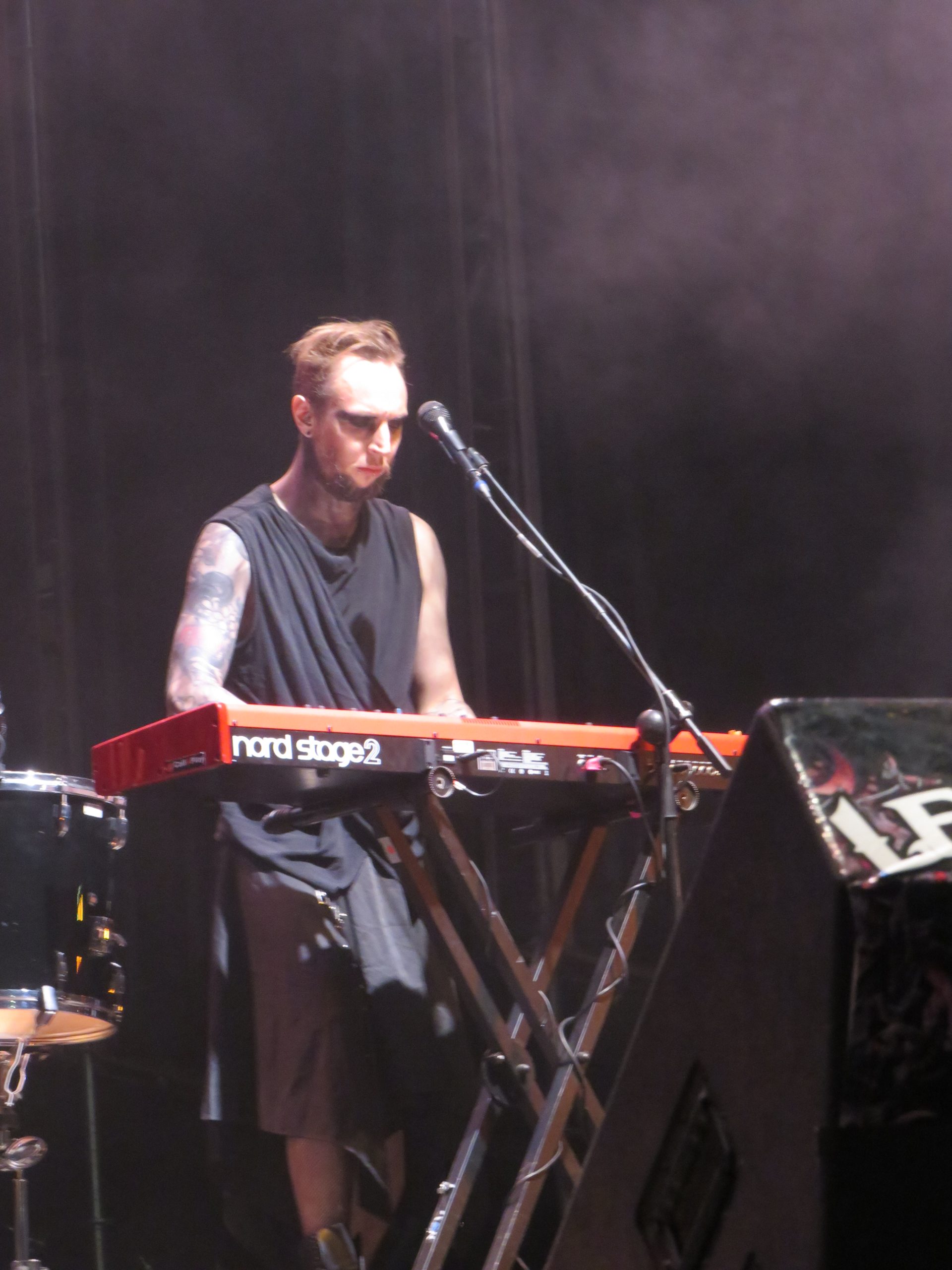 Con su metal industrial aparecia la mitica banda FEAR FACTORY inicialmente con algún problema técnico que fue subsanado notablemente para escuchar “Demanufacture”, “Self Bias Resistor” y “Zero Signal”. Tras multiples cambios en los más de 35 años de historia del grupo de Los Angeles, la experiencia sublime del único miembro de la formación original el guitarra Dino Cazares marcaba el paso de un repertorio intenso con su nuevo cantante Milo Silventre que se entregó al completo, siguiendo con canciones como “Flashpoint”, “Pisschrist”, y “Linchpin“.