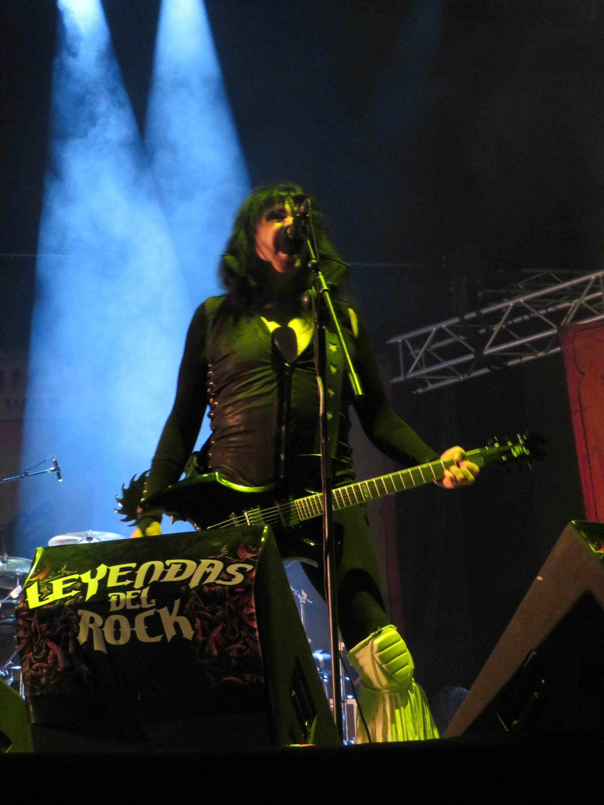 Y pese a los últimos años con directos sentado en una banqueta por problemas de cadera, o por la perdida de voz con el uso de pistas pregrabadas, etc, etc ..sigue al pie del cañon. y la verdad que esa etapa desapareció y en el Leyendas, como ya ocurrió el mes pasado en el SUN & THUNDER, demostró su valía desde el primer corte de su primer álbum homónimo que como ya se anunció tocaría integramente empezando con la mítica “I Wanna be somebody” y siguiendo con el resto de canciones “L.O.V.E. Machine”, “B.A.D.” mientras en la pantalla trasera iban apareciendo imagenes de sus vídeos y actuaciones donde personalmente iba recordando con emoción cada uno de sus temas “Sleeping in the Fire”, “On Your Knees” hasta el último tema “The Torture Never Stops”, donde de repente hubó un parón.