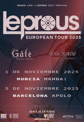 ROYAL SORROW también estará de gira este otoño junto a LEPROUS y GÄTE para la gira europea Melodies of Atonement. La gira, que comenzará el 29 de octubre y se extenderá hasta el 23 de noviembre, visitará importantes ciudades de Francia, Alemania, Noruega, Suecia, España, Portugal y más.En España, visitarán la sala Mamba de Murcia el dia 1 de Noviembre y el 5 estarán en la sala Apolo de Barcelona. Entradas disponibles pinchando en la imagen.