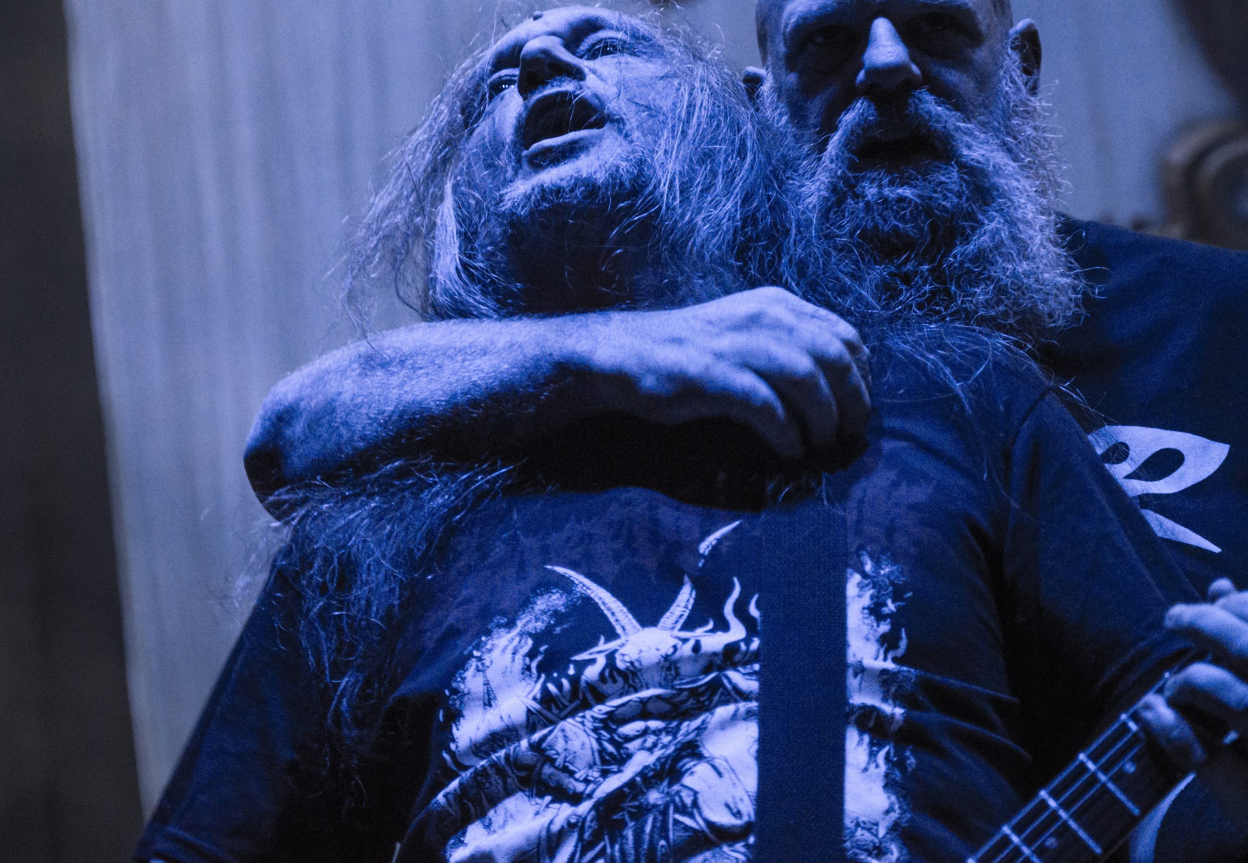 Las pruebas de sonido fueron un suplicio delicioso: riffs aislados de Holt –el maestro de las cuerdas que también azotó en Slayer– que rasgaron el cerebro, Hunting calibrando dobles que sacudieron las costillas desde 1979, Dukes aclarando la garganta con un growl que brotó como humo negro. El público vibró, puños apretados, ojos fijos en el escenario, barrera tensándose como un cable a punto de romperse. Luces rojas titilaron, el bajo retumbó, y ¡zas! Exodus irrumpió con “Bonded by Blood”: un impacto que estrelló contra la realidad desde el primer acorde.